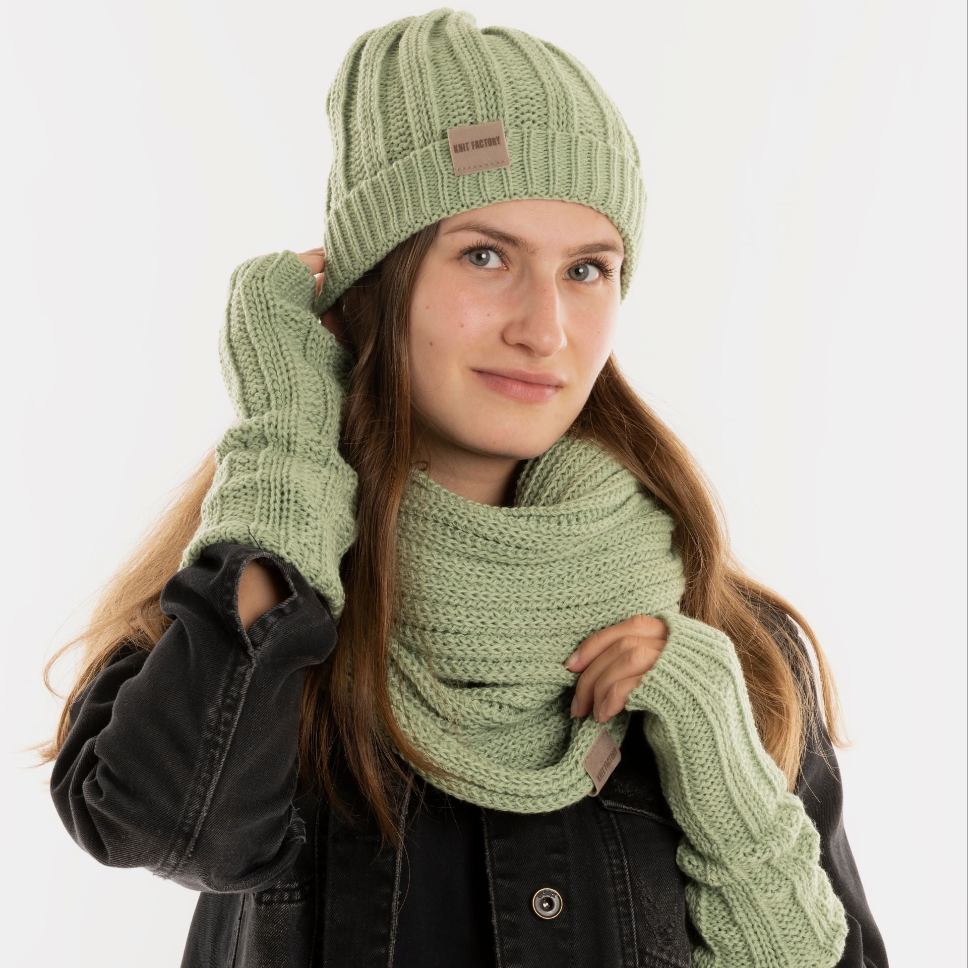 De Knit Factory Nica armwarmers combineren functionaliteit en stijl. Het stevige maar soepele breisel met ribstructuur zorgt ervoor dat ze perfect aansluiten rond je polsen en onderarmen, zonder te knellen. Zo geniet je altijd van behaaglijke warmte.