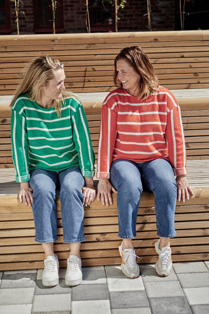 Deze stijlvolle damestrui is gemaakt van 60% wol & 40% Lyocell (TENCEL™), een materiaal dat vooral in de lente/zomer populair is geworden. De trui heeft een relaxte pasvorm en de mouw is iets wijder, waardoor je hem gemakkelijk kunt oprollen. Uitgevoerd met een royale halslijn en splitten onderaan de zijkanten.