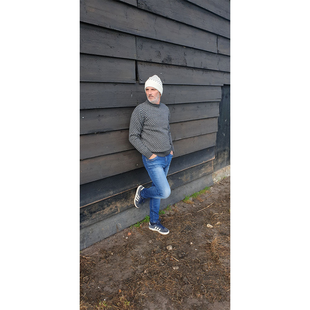 Klassieke, zachte herentrui van het Zweedse merk Ivanhoe of Sweden. Gebreid met een ronde hals en manchetten in ribstructuur.
