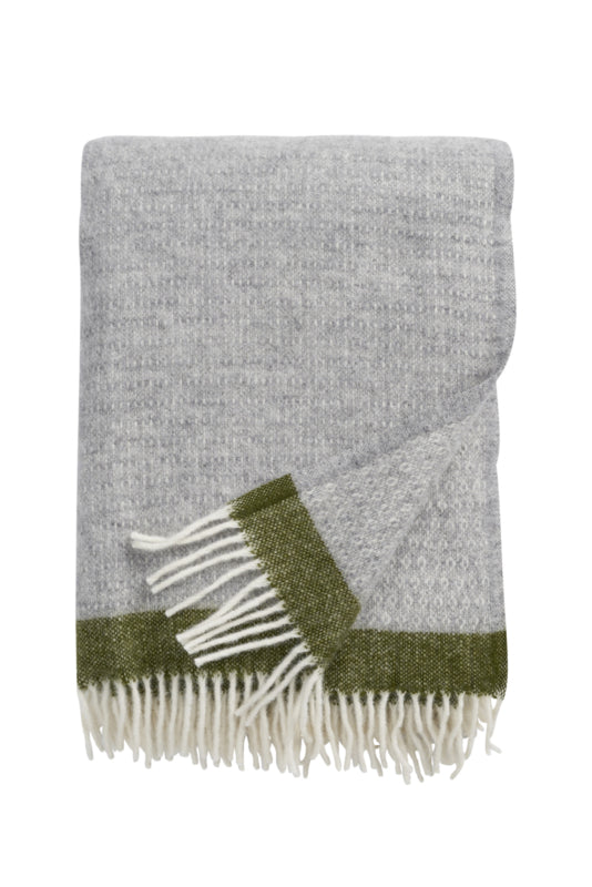 Plaid Hampus is een zachte, lamswollen plaid met een ingeweven motief. De deken is mooi afgewerkt aan de randen, heeft een groene rand in een mooie avocadokleur en is afgewerkt met witte franjes. Een mooie aanvulling in je interieur!