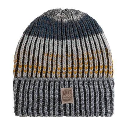 Deze Remy muts van Knit Factory biedt jou aangename warmte tijdens de koude winterdagen. De muts is gebreid in een leuk kleurverloop; de neutrale kleuren zorgen voor veel combinatiemogelijkheden met je favoriete outfits. De muts is uitgerust met een Knit Factory logo aan de voorkant.