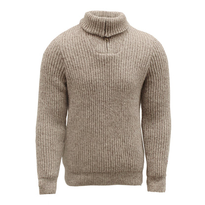 Klassiek ribgebreide herentrui. Deze heerlijk warme trui is gemaakt van 100% Noorse wol en daardoor robuust en extra dik. Wol heeft een paar fijne natuurlijke eigenschappen; wol ademt, houdt je lekker warm en beschikt over het grootste absorptievermogen van alle natuurlijke vezels. Daardoor is het zo’n uitstekende antitranspirant. Wol neemt vocht gemakkelijk op en ‘ademt’ het als het ware ook weer uit. De trui is gemaakt in Noorwegen.