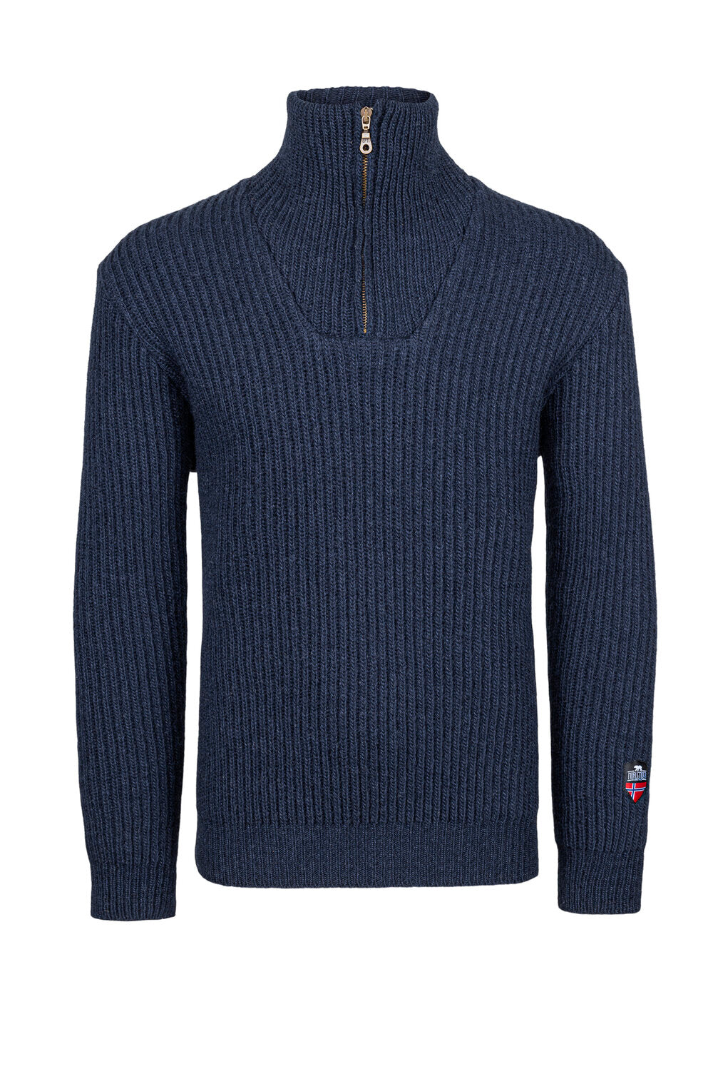 Klassiek ribgebreide herentrui. Deze heerlijk warme trui is gemaakt van 100 % Noorse wol en daardoor robuust en extra dik. Wol heeft een paar fijne natuurlijke eigenschappen; wol ademt, houdt je lekker warm en beschikt over het grootste absorptievermogen van alle natuurlijke vezels. Daardoor is het zo’n uitstekende antitranspirant. Wol neemt vocht gemakkelijk op en ‘ademt’ het als het ware ook weer uit. De trui is gemaakt in Noorwegen.
