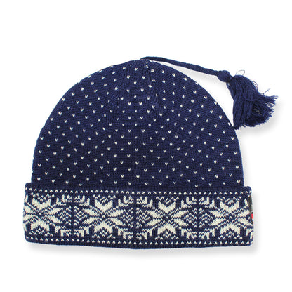 Muts van 100 % wol met sneeuwkristalpatroon en kwastje.