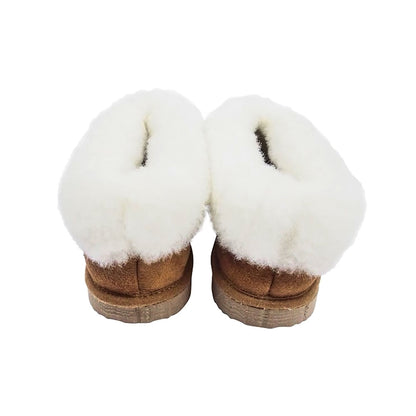 - Gemaakt van omgekeerde schapenvacht; zachte vacht aan de binnenkant en soepel schapenleer aan de buitenzijde.