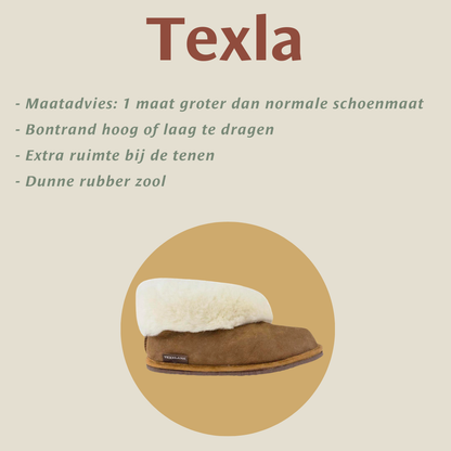 Model Texla valt wat kleiner uit. We raden daarom aan om één maat groter te bestellen dan je reguliere schoenmaat. Heb je een halve schoenmaat? Rond deze dan af naar boven en volg daarna het maatadvies. Voorbeeld: je hebt schoenmaat 38,5. Rond dit af naar boven = maat 39. Volg het maatadvies +1, je bestelt de pantoffel in maat 40.
